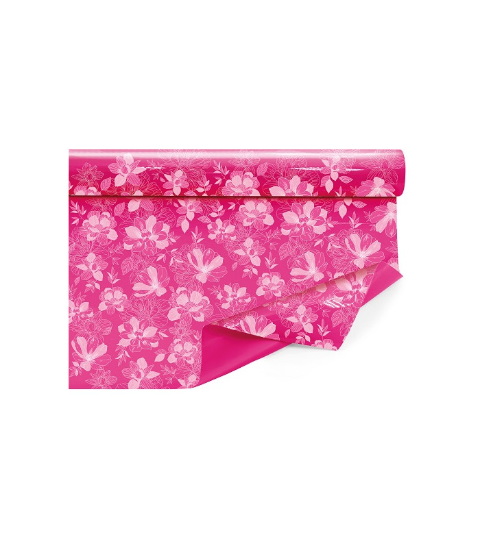 CELOFÁN TRANSPARENTE FLORES 70CMX50M ROSA
