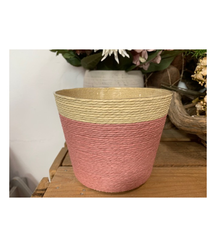 MACETA CUERDA COLOR Ø19XH16B14 ROSA/NAT.