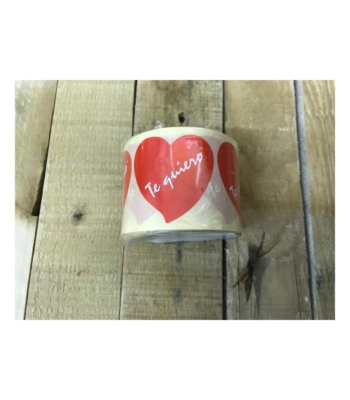 ROLLO ETIQUETAS CORAZON TE QUIERO 250UNI