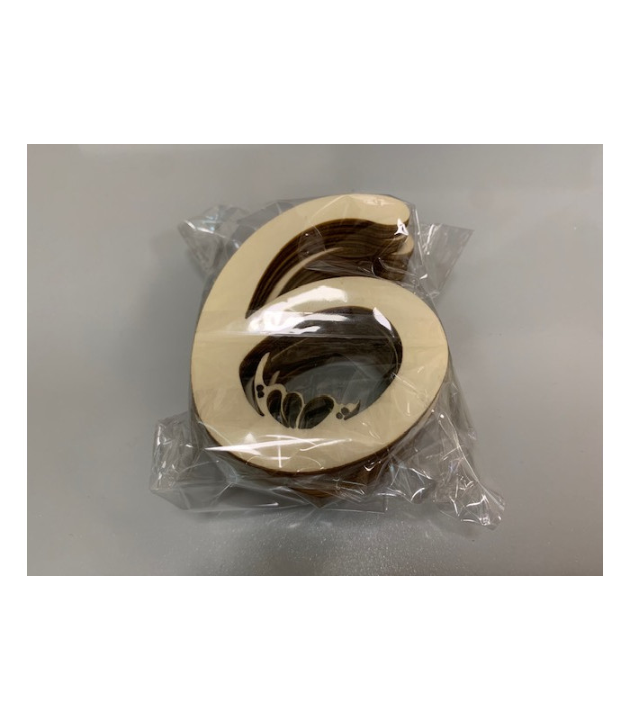 STICKERS NUMERO 6 MADERA NATURAL(16 UNI)