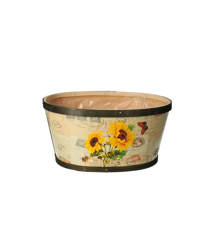 BASE POT MADERA OVALADA GIRASOLES